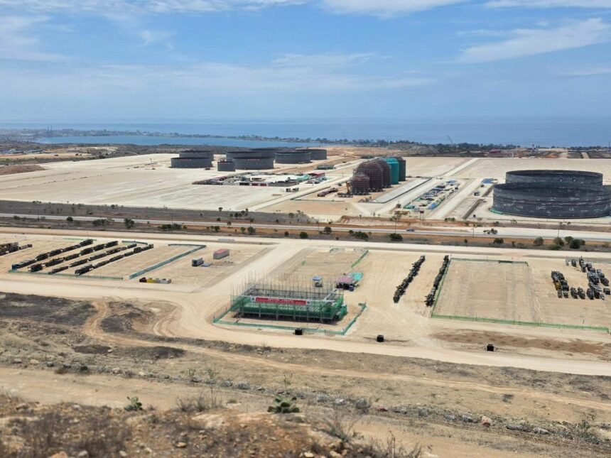 Paralelamente, a cerca de 20 quilómetros da futura Refinaria, avança uma obra de engenharia civil crucial. A jusante da barragem de Lomaum, o sistema captará água do Rio Catumbela, bombeando 400 litros por segundo para garantir a autonomia hídrica do complexo. As obras decorrem a bom ritmo, com previsão de que “o líquido chegará à refinaria em Junho deste ano”.